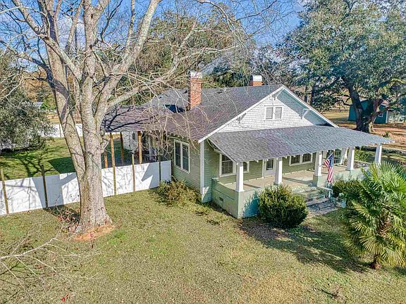 Beautiful 3 bed, 2 bath Craftsman home situated on almost 3 acres surrounded by enormous live oak trees in tranquil country setting. Built in 1928, this home has an abundance of character of the early 1900s. Antique windows, the large front porch and a wood stove insert in the living room are just some of the things that make this home stand out. Craftsmanship abounds as you enjoy walking through noticing the high ceilings and hardwood floors throughout. Piano to convey with sale of house. Master bedroom features a fireplace, his and her closets, and private access to a sunroom and porch as well as a private bath. Outside there are 2 workshops with electricity for the project enthusiast or ample storage. The roof was replaced in 2016 and septic was replaced in 2012.