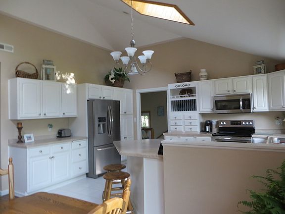 Enjoy living on beautiful and desirable Pike Lake. This 3-BR 1,924 sq. ft. one-level home is conveniently located close to golf course, sports fields & shopping. A main floor family room has a wood burning stone fireplace & the spacious living room has a gas fireplace. Large open kitchen & dining rooms feature vaulted ceilings & skylights. The main floor laundry room washer & dryer are 2 yrs old. The gas furnace and water heater are 3 yrs old. All stainless kitchen appliances are 2 yrs old. The private level lot is 1.7 acres with 112' lake frontage. Five sets of newer glass doors face the lake . There is plenty of storage including the foyer with its large closets. There is a two-car garage (26x26) with another smaller garage attached to it. The spectacular sunsets are ever-changing on this west facing property. This attractive and updated home is perfect for all your relaxation & entertainment needs. By appointment only, please. Agent selected.
