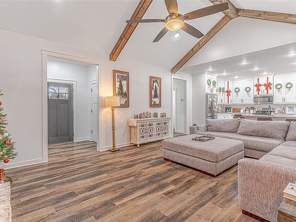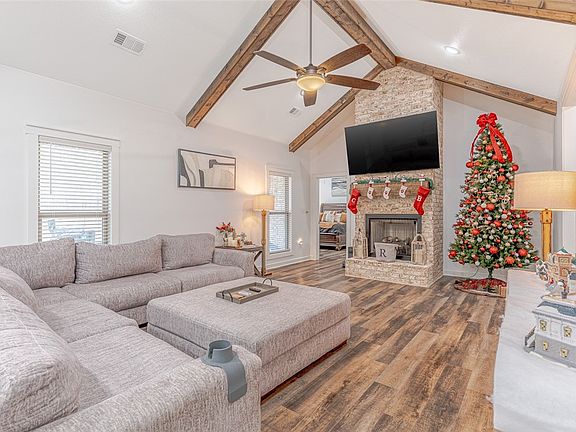 Spacious bedroomsCozy fireplaceLarge fenced-in backyardBeautiful exposed wood beams