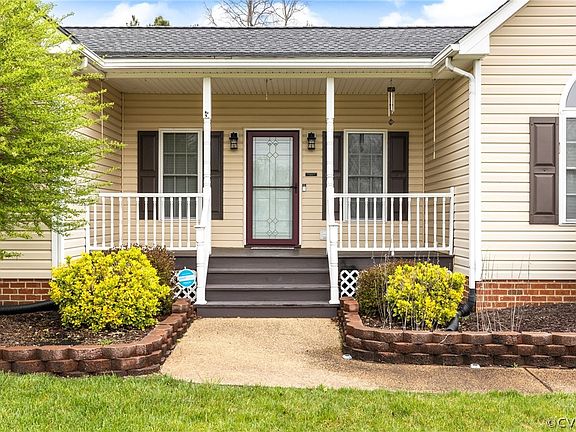 LOCATION!! LOCATON! Welcome to your BEAUTIFUL 1740 sq. ft. Ranch-Style Home! This spacious retreat includes beautifully vaulted ceilings, hardwood floors in the living spaces, newer carpeting in the primary bedroom, tiled floors in the bathrooms! The foyer entrance is open and inviting, a lovely formal dining room is to your right upon entry, with a gorgeous palladian window, tray ceiling and chair rail molding. Very spacious and impressive, possibly also makes a great home office. The chef's delight kitchen feature an abundance of cabinetry, counter space, a pantry, a beautiful bay window with eat-in area that overlooks the spacious fenced in back yard. Stainless appliances convey. A roomy laundry/utility with shelving, a double closet, conveniently located to the large primary bedroom that feature a walk-in closet, ensuite bath with double vanity, a separate shower and a large soaking tub with privacy window above. To your left upon entry, you will find two additional spacious bedrooms, both with hardwood floors and double closets. One with a palladian window, the other one with two corner windows. Natural light flows throughout! The second full bath is located in between. The center of this fabulous home is the huge family room with an inviting gas fireplace, soaring ceiling, adjacent to the 320 sq ft composite deck with attached gazebo and paver firepit! What an awesome outdoor living space! Imagine all the entertaining, grilling, backyard ball games and family time spent here! A relaxing evening sitting under the gazebo, a morning cup of coffee. If you need more inspiration, the covered front porch has pull down shading, a side load entry 2 car garage, a paved drive way and irrigation system too! ALL THIS on an almost 1/2 acre landscaped level lot in sought after Chesterfield Co., convenient to shopping, restaurants, interstate, schools, what more could a homebuyer want!? This one has it all! TURN KEY READY! Yes, it does have a storage shed too! MAKE THIS ONE YOUR NEW HOME TODAY!! COME SEE!!