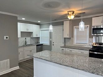 Charming 3-Bedroom Home with Modern Upgrades and Spacious Backyard This beautifully remodeled 3-bedroom, 1-bathroom home offers a perfect blend of modern amenities and classic charm. There is an open-concept living area adorned with all new flooring that seamlessly connects the living room, dining space, and a state-of-the-art kitchen equipped with all-new appliances. A beautiful granite countertop for food prep doubles as seating for meals. Each bedroom is thoughtfully designed to provide comfort and ample natural light. The contemporary bathroom features stylish fixtures and finishes, ensuring a spa-like experience at home. There is a ample-sized patio for outside seating and cooking, or unwinding after a long day. There is a large backyard for cornhole and other outdoor activities. The outside lighting accents the house and gives a sense of security. There is a driveway and street parking. This house is close to parks, elementary, middle and high schools, grocery, malls and other local amenities. Don't miss out on this exceptional rental opportunity! The terms of the lease is 12 months. Tenant is responsible for all utilities. No smoking allowed in the home.