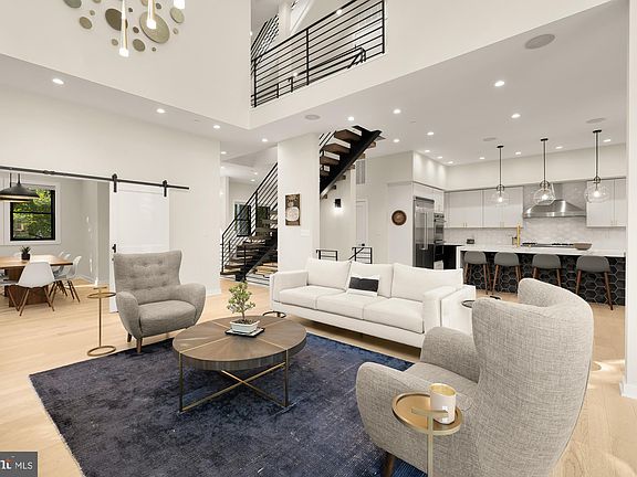 Welcome to this exquisite newer construction with an elevator in the sought-after Palisades. The home is filled with upgrades, abundant natural light, fantastic location, seamlessly blending modern design with elegant features. From the gracious front porch, relax on the swing and enjoy serene neighborhood views, or ascend to the unique rooftop deck to admire breathtaking winter vistas of the Potomac River. Designed for entertaining, this showpiece features a dramatic open floor plan, striking "floating" stairs, and soaring 22-foot ceilings. A custom, two-story fireplace and 12-foot glass doors open to your private patio. Culinary enthusiasts will adore the oversized professional Chef's Kitchen, featuring cascading quartz countertops, commercial-grade Viking appliances, two wall ovens, 6 burner gas cooktop with griddle, ample counter space, and a large pantry. The main level also includes a versatile office/dining room with chic white barn doors, a formal sitting room, a powder room, and elevator access to all four levels. Step outside to your private, fully fenced backyard with a patio, ideal for BBQs and al fresco dining. The primary suite is the epitome of luxury, with a spacious bedroom and spa-like bathroom featuring stunning finishes. Indulge in the oversized dual-head shower, rain showerhead, double sink vanity, soaking tub, and a convenient extra vanity. A private balcony and an incredible walk-in closet with a coffee bar, beverage fridge, custom pulldown hanging bars, and two movable islands complete this magnificent suite. This level also offers another full bathroom, a versatile bedroom/office with a closet, and a second washer/dryer. Ascend to the rooftop deck for sunset views. On the second level, discover 4 generous bedrooms, 2 of which are en-suite, and 3 custom bathrooms, plus a convenient laundry room. The lower level presents a full wet bar with an island, a full-size fridge, a custom bar with a wine fridge and storage, a rec/media room (with Stewart Filmscreen Perforado Acoustic screen, Epson Home Cinema Projector, and Dolby Atmos surround system with subwoofer), custom closets for extra storage, and an exercise room. The large garage includes a Tesla Universal EV Charger and mudroom cubbies with ample storage space. Other updates include Seven Sonos amplifiers powering the whole-home sound system, Motorized sun screen added to the front porch, the Coastal Source landscape lighting, automated blinds throughout the home, Swan S Pro toilets installed in all ensuite bathrooms, zoned systems, and much more. Prime location, just steps from Palisades Park/Rec Center/Playground, Key ES, great restaurants (such as Et Voila!, Lupo Verde, Kappo, Black Salt), groceries, shops, library, and the Sunday Farmers Market. The community buzzes with events, including the 4th of July Parade and festive holiday celebrations. Quick access to downtown DC, Clara Barton Parkway, Capital Crescent Trail and Palisades Park, Sibley Hospital, American & Georgetown Universities, and major routes such as the C&O Canal, Whitehurst Freeway, Key Bridge, Chain Bridge, I-495, and Reagan National Airport. This luxurious home offers an unparalleled living experience.