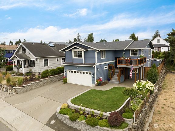Million Dollar view awaits in this multi-generational home. Highly sought-after Ruston location. Walking distance to Pt. Ruston or Pt. Defiance for a relaxing evening. This home has all the updates of a new home along with granite kitchen countertops with stainless steel appliances. The 2 exterior decks capitalize on the superb view of commencement bay. Plenty of room with 5 bedrooms and 2.75 baths. Awesome garage is fully equipped with custom cabinets and epoxy floor. Do not miss the double kitchens for those large meal prep days. On the upper floor you have 3 bedrooms, a peaceful Great room and a deck overlooking the manicured back yard and view of the water. On the lower floor, enjoy 2 more bedrooms, full Bath and so much more.