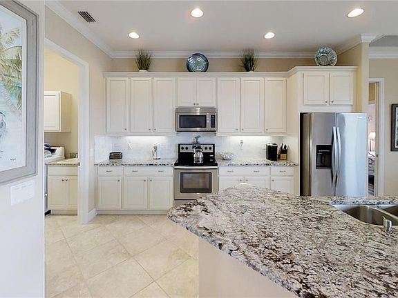 - Interior Features: Ceiling Fans(s), High Ceiling(s), Master Bedroom Downstairs, Crown Molding, Walk-In Closet(s), Open Floorplan, Kitchen/Family Room Combo, Stone Counters, Tray Ceiling(s)