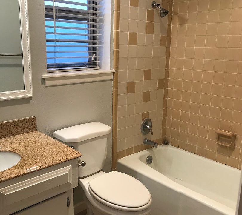 Bathrooms both have tiled Shower tub combo and single vanity with brush nickel hardware and fixtures