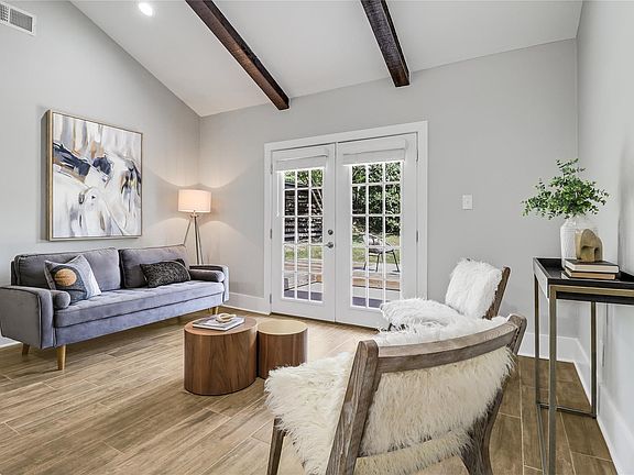 Modern updatesLarge tree-shaded backyardSoaring beamed ceilingsEat-in kitchenPeaceful dead-end streetSplit-bedroom layout