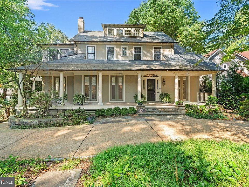 Situated in the coveted Town of Somerset, this distinguished Craftsman-style residence presents a rare opportunity to enjoy refined living in one of the region’s most notable communities. The home underwent an extensive renovation in 2018-2020, and offers 7 bedrooms and 4.5 baths across four levels, combining architectural character with modern sophistication. An inviting front porch introduces the residence, leading to interiors defined by elegant millwork, expansive windows, and thoughtfully proportioned rooms. The chef’s kitchen, equipped with Thermador/Sub-zero appliances adjoins the family room with stone fireplace, and extends seamlessly to the Ipe wood terrace, creating a natural flow for both formal entertaining and casual gatherings. Gracious living and dining rooms, along with a private study, further enhance the home’s appeal. The upper levels feature generously appointed bedrooms, including a serene primary suite with a spa-inspired bath with views to the adjacent parkland, and exceptional closet space with built-in cabinetry. The finished lower level offers versatility with additional living areas suitable for a media room, fitness studio, and guest accommodations, including a full bath. A beautiful, carriage-style detached garage with high ceilings and a separate flex space underneath adds to the property's appeal. The grounds are equally impressive, backing directly onto protected conservation land that affords privacy and an enduring connection to nature. Lush landscaping, multiple outdoor spaces, and an expansive yard provide an exceptional living experience. The home's location enjoys close proximity to Somerset Elementary School, the beloved Somerset pool and tennis courts, Capello Park, as well as Friendship Heights Metro, downtown Bethesda, and the Capital Crescent Trail. A rare offering, this Town of Somerset residence exemplifies timeless craftsmanship, scale, and distinction in an unrivaled setting.