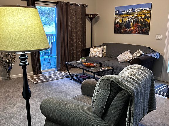 FULLY Furnished. First floor condo available October 1, 2025. Short term lease 3, 6, 9 or 12 months. The rent includes electric, gas, and internet. HOA is paid by owner and includes garbage, snow removal and exterior maintenance. Minimum 3 month rental. Newly carpeted, fresh paint, new mattress in both bedrooms. Close to I-25 and 34, 5 minutes to Medical Center of the Rockies, 15 minutes to Ft Collins. Located on beautiful Equalizer lake with bike and walking trails. Minutes to shopping and restaurants. Perfect property for someone moving into the area and decide where they want to live, travel nurses, etc. come take a look. Small dogs allowed, no smoking. Includes one car garage and additional parking space for one car. Property is to be professionally cleaned upon moving out.