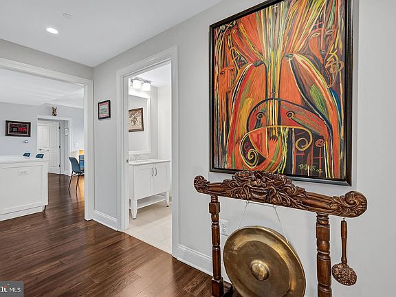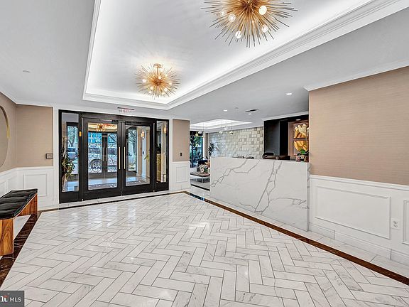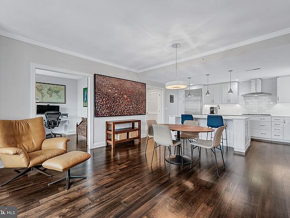 Light-filled, impeccably maintained, and ideally located in Hampden Row—one of Bethesda’s premier boutique luxury buildings. This spacious two-bedroom, two-and-a-half-bath residence offers approximately 1,600 square feet of thoughtfully designed living space, including a separate den/home office and a smart split-bedroom layout that maximizes both privacy and function. Situated in the heart of Downtown Bethesda, the home is just steps from the area’s best shopping, dining, and entertainment options, with everything from fine restaurants to boutique fitness and cultural venues right at your doorstep. Inside, the open-concept living and dining area is bright and welcoming, anchored by a modern kitchen with stainless steel appliances, a large island with seating, and custom high-quality built-ins offering ample storage—perfect for both everyday living and entertaining. Just off the living room, a private balcony provides a cozy outdoor escape—ideal for morning coffee or evening wine. Each bedroom is positioned on opposite sides of the main living space and includes its own en-suite bath. The primary suite features dual vanities, a soaking tub, separate shower, and generous custom closet space. The second bedroom is equally spacious and well-appointed, while a powder room conveniently serves guests. Additional highlights include two premium oversized garage parking spaces—side-by-side—with an EV charger already installed. Building amenities are exceptional: a stunning rooftop terrace with sweeping views, a large, fully equipped fitness center, an inviting club room, a beautifully appointed lobby, and 24-hour concierge service. This is a rare opportunity to own a turnkey, designer residence in one of Bethesda’s most coveted buildings—offering the perfect blend of luxury, space, and convenience. Truly exceptional—and not to be missed.