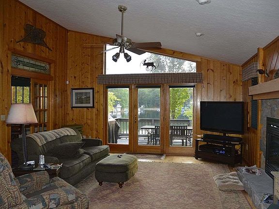 LONG LAKE-Custom built beautifully landscaped home with maintenance free exterior and finished walkout basement situated on a quiet bay of Long Lake. A flowing open 1st floor layout includes a large country kitchen will full convenience amenities with walk-in pantry, large dining area and spacious living room with wood floors throughout. The living room has a gas fireplace with large windows and main deck access equipped with motorized awning. A large master bedroom with full private bath, walk-in closet, and private deck, a spacious den with extensive built in bookshelves and large lake facing windows, half bath and laundry room complete the first floor layout. There are Cathedral ceilings throughout the master bedroom, living room and den. The upstairs of this home contains an enormous bedroom that is large enough for two queen beds with an amazing amount of room to spare. The full finished walkout basement contains a full bathroom, large open great room and gaming nook and a charming bedroom with a huge walk-in closet that currently contains bunk beds for extra sleeping! There is an extensive storage area attached to the utility/furnace room. Multiple closets exist throughout the home that provide a great deal of further storage. The home has been converted from propane to natural gas. Many extras are included in this home such as whole house 20kw automatic natural gas generator, garage heater, top of the line water softener and pre-filter purification, 5inch well, ADT security system, remote viewable exterior 5 camera system, Internet controlled programmable thermostat and 2nd sump pump with battery backup. This owner spared no expense in making it a rare and precious find in this area. Come see this amazing home with stained glass accents, lodge like wood tones and other attentions to detail that cannot be appreciated unless you see them in person. Seller will also entertain offers on home contents to make this a practically turnkey experience!