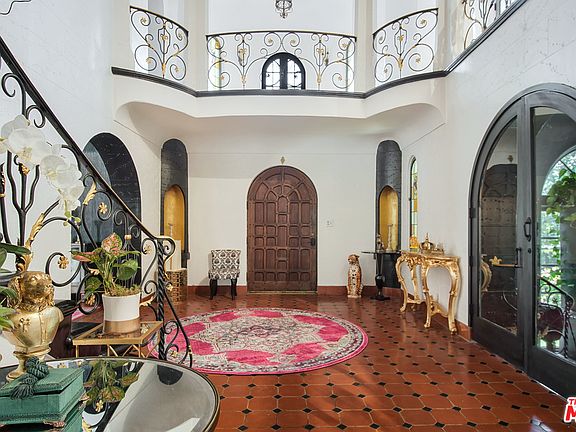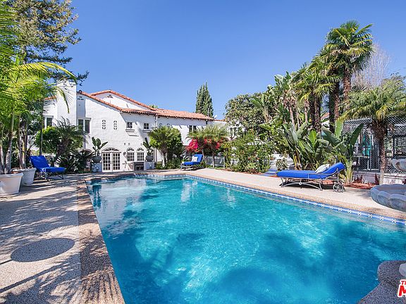 Welcome to "Casa Domingo", an architecturally stunning 1927 Spanish Mediterranean Revival. Generously setback from the street behind a gated motor court, this lush compound is comprised of a double lot which includes a lighted tennis court, renaissance style pool, detached guest house & separate back driveway w/3-car garage. Enter through the grand foyer w/cathedral ceilings centered by a dramatic chandelier. Other details include original stained glass windows, hand painted murals, original "Malibu Tiles" throughout, art niches & gracefully curved ironwork wrapped into the grand staircase. The large living room French doors lead to a patio w/imported European fireplace hearth, private gardens with a variety of fruit trees & several garden boxes. Large formal dining room, cook's kitchen and breakfast room comprise the entry level. Upstairs there is a grand master suite, a junior master suite, 2 additional bedrooms & separate gym. The basement level has a historic media room.