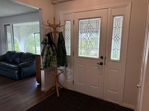 Stunning 6-Bedroom Waterfront Home! This spacious and versatile 6-bedroom, 4-bathroom home is perfect for large or growing families, multi-generational living, or even a potential bed and breakfast. Located 1.5 hours from Red Deer and under 40 minutes to Stettler, it offers peaceful living with room to grow — both indoors and out. The main floor welcomes you with a large entryway and features a bright living room with wood-burning fireplace, formal dining room (currently used as a bedroom), 2nd dining area and well-equipped kitchen with plenty of cabinet space and prep areas. Once operated as a commercial kitchen, much of the infrastructure remains in place — a unique opportunity for home-based business ventures (buyers should confirm current compliance). Off the kitchen is a beautiful south-facing screened sun porch, perfect for enjoying your morning coffee with a view of surrounding nature, bug-free relaxation in the evenings, or peaceful outdoor dining. A 2-piece bath, laundry, and additional storage areas complete the main level for everyday functionality. Upstairs, you’ll find 4 generously sized bedrooms, including a spacious primary suite and updated 4-piece ensuite featuring modern finishes. The remaining 3 bedrooms share a 5-piece main bathroom with dual sinks — ideal for busy mornings. Every room upstairs benefits from natural light and peaceful views, adding to the home's inviting atmosphere. The fully developed basement offers even more living space, with a cozy family room featuring a wood-burning insert for winter comfort, a wet bar for entertaining, 2 more bedrooms, 3-piece bathroom, and plenty of storage. This layout provides flexible space for teens, guests, or a home office setup. 2 separate furnaces heat the home — a newly installed unit services the upper levels, while a dedicated furnace keeps the basement cozy and efficient. This home has seen numerous upgrades, including new hurricane-grade metal roof designed for durability and protection, new vinyl plank flooring, fresh paint and new kitchen stove. Large windows throughout the home bring in tons of natural light, creating a bright and welcoming environment that feels spacious and uplifting. Outdoors, find an attached double garage with plenty of space for parking and storage, an additional backyard storage shed, and RV parking. The established garden is a rare gem, bursting with a variety of fruits and perennials including plum, cherry, apple, saskatoons, strawberries, rhubarb, raspberries, hops vines, and asparagus. Whether you’re a passionate gardener or looking for homegrown produce, this space offers both productivity and relaxation —with room to expand. Front yard offers waterfront views, while a playground right next door adds extra appeal. If you’ve been dreaming of a peaceful lifestyle with space, beauty and flexibility, this home delivers. Whether you're looking for a forever family residence, a business opportunity, or a place to unwind, this property checks all the boxes.