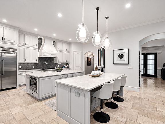 Traditional and updated Martyn Hammer home. Stunning double iron and glass doors welcome you into this Dallas sanctuary. Impress guests with your walk-in wine room, then walk to the sophisticated lounge—the perfect conversation starter. Renovated gourmet kitchen featuring Thermador range and dual islands means you'll never miss a moment while preparing culinary masterpieces. With two dining areas; get-togethers of any size are possible. Step outside to your brand new 2024 pool, fully-equipped outdoor kitchen, and fireplace—a personal resort. Professionally landscaped and serene, the ten-foot board-on-board privacy fence with automatic gate ensures your sanctuary remains exclusively yours. This smartly designed house has four generously sized bedrooms, each with private en suite baths. The main-level bedroom with outdoor access is perfect for visitors or live-in help. Upstairs, the state-of-the-art media room features projector, screen, and 5 in-wall speakers for cinema-quality entertainment. Upstairs entertaining lounge with wet bar creates the ideal space for entertaining with a stunning fireplace adding ambiance. The spacious master suite is a true retreat with sitting area and see-through fireplace. The spa-inspired master bath boasts double shower, separate vanities, jetted tub, and his and her closets with built-ins. Integrated speakers complete your private oasis. Other notables: spacious laundry room with folding area, sink, mudroom off garage and tankless water heater. Professional 8-zone irrigation with drip system. Designer lighting throughout. Minutes to Downtown Dallas, Love Field, hospital district and tech corridor means less time commuting, more time living. Inwood Village's premier shopping and dining are at your doorstep. Briarwood's prestige speaks for itself. Your private resort awaits—over 5,000 square feet designed for families, entertainers and anyone who desires impeccable taste. Zero compromise.