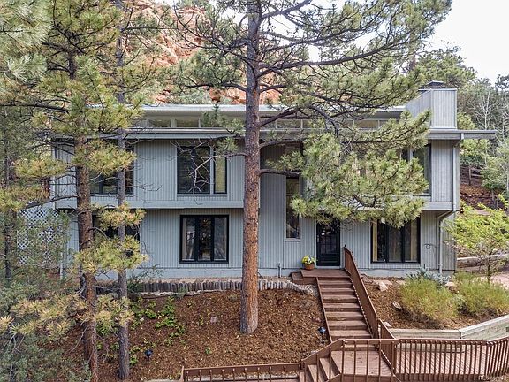 Beautiful home perfectly situated in a quiet setting on 1 acre among trees & Red Rocks! Private 'Garden of the Gods' niche w/open space. Best value in the neighborhood, this home has been tastefully updated w/new carpet, fresh paint, luxury vinyl & new tile flooring throughout. Open & airy floor plan w/lots of natural light with 3 beds (1 could be a 2nd master or a large study/office) & 4 baths. The main floor master opens to the deck & has a spacious walk-in closet, wall of windows, sky lights, 5 piece spa bath w/jetted tub, large custom shower w/dual shower heads & tile flooring. Relax in the private hot tub on star filled nights just outside the master suite! The great room includes a fireplace encased w/moss rock & large windows bringing the outdoors in. The kitchen has new flooring, newer appliances, tile counters, cabinets w/custom pull out drawers & breakfast nook that opens to the back deck. The lower level has a rec/family room w/wet bar & pool table. 20 minutes to Castle Rock