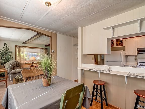 Great location in the sought after Cedar Grove 55+mobile home park, located near Lake Padden, golf course and trails. This home sits on a large corner lot near the community pond & club house, adjacent to guest prkng. This home has been well cared for with upgrades to include; custom blinds, newer appliances, storm door, gas furnace and fireplace. The house has laminate floors in the living areas. The park is community owned w/low HOA's of $290 a month that include Water, Sewer, Garbage & Cable.