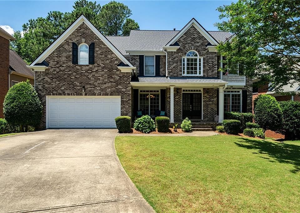 This home was just repainted inside on accent walls and partially outside in the beginning of August! The neutral wall color shines in this stunning 5 bedroom, 4 bath home on an unfinished basement in Alpharetta High School District backing to Webb Bridge Park in Thornbury Parc! The exterior has some fresh paint and the deck was repainted for you to enjoy as you walk out of your new home to jump on the trail just one home away and enjoy all types of amenities, or go jump in the neighborhood swimming pool. This open floor plan features a 2-story foyer, 2-story great room with a double sided fireplace into the Sunroom. This home receives amazing sunlight as the front door faces East. As you walk into the French front doors you will love the formal dining room to the left and open living/office space to the right. There is a guest bedroom and full bathroom on the main floor. The two-story great room is open to the Kitchen that features granite countertops, new vent hood, Stainless Steel appliances, tile backsplash, Butler's pantry with glass cabinet fronts and island. The main floor living areas feature stunning site finished hardwood floors. Just off the breakfast nook you will love the large private deck and backyard with green space. The laundry room is convenient on the main floor close to the garage with a built-in desk area across the hall. Upstairs you will love the open floor plan. When heading up the stairs to the right you will find two bedrooms that share a full bath with separate vanities and private tub/shower area. One large bedroom features a private bath with tub and tile surround. The owner's bedroom is very spacious with a sitting area and vaulted ceiling. The full bath features a double vanity, separate tub and shower with large walk-in closet. The full basement is stubbed in for a full bath with beautiful windows, blinds and two doors out to the covered patio. This brick home is gorgeous with the neutral exterior colors, Double Front Doors, Transom windows, and details throughout. The new Roof was installed in 2020, new water heater 2018, new vent hood in 2021, nest smart thermostats, high speed Cat 6 network in all bedrooms, Google voice capabilities to lights and thermostats, 5.1 monster audio pre-wired for basement home theatre, basement insulation, smart Wi-Fi garage door opener and blinds! You will fall in love with this floor plan, location and schools! Welcome Home!