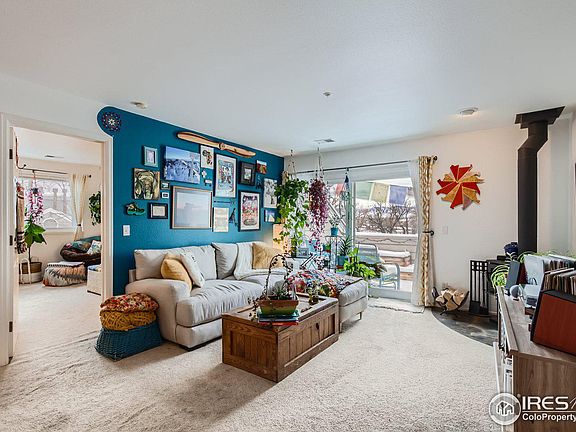 This top-floor unit faces west, providing captivating views of the open space, lake, trails and foothills. Its southwest corner design allows natural light to flood the space. Relax on your private patio and bask in the beauty. The open layout seamlessly integrates the kitchen, dining area, living room, and patio, creating a social atmosphere perfect for gatherings and relaxation. Experience the cozy ambiance provided by the Regency pot belly fireplace, adding an extra layer of charm/warmth to the space. The master bedroom boasts a stylish built-in closet with a modern aesthetic and plenty of drawers for convenient storage. Indulge in the joys of life with easy access to nearby trails that lead directly into Boulder or a quick jaunt to Avery Brewing. This lock-and-leave lifestyle is yours to embrace, with the HOA taking care of exterior maintenance. Plus, enjoy the added amenities of a pool and common area. The property features a one-car detached oversized garage, along with an additional assigned parking space for your convenience. Welcome Home!