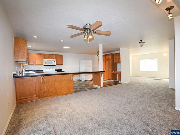 SINGLE LEVEL on a corner lot in a desirable Keizer neighborhood. With new carpet, new interior paint, and new flooring in both bathrooms this home is move in ready! The large corner lot allows for RV parking connected to the fully fenced back yard. Generous patio space with access from both the main living area and the large master bedroom. Two living spaces, large kitchen with generous counter space, dual vanity guest bath, master with ensuite, AND the fridge, washer/dryer included. Must see!