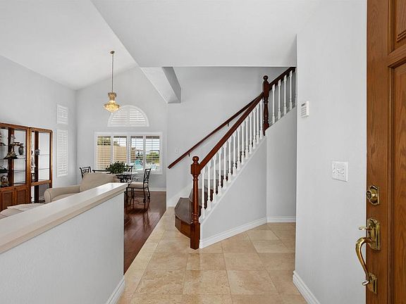 Beautifully upgraded POOL home situated ON A LARGE/PREMIUM "VIEW" LOT in the heart of Rancho Del Oro close distance to an award winning Elementary school, a park and YMCA. Located on the end of one of the nicest well-kept CUL-DE-SAC streets in this neighborhood pride of ownership abounds in this lovely 4 bedroom home! This home has been lovingly cared for and includes many tasteful upgrades. The living room and dining areas have vaulted ceilings, attractive wood plank flooring and large windows with a view of the amazing backyard. The family room, which is adjacent to the remodeled kitchen, has a welcoming fireplace and flows into the large game room addition which is perfect for gatherings. The features of the kitchen include granite counters, gorgeous cabinetry and travertine flooring. The downstairs powder room was remodeled and includes modern fixtures, a custom vanity, and other special designer touches which includes a private door that goes outside to the pool area. The primary retreat is privately situated away from the secondary bedrooms and includes your very own private and expansive view deck where you can watch the beautiful sunsets and on a clear day you can even see the ocean! The large deck (new flooring was installed in 2022) looks out to the private and tropical backyard. The backyard is an entertainer's dream and is the ideal venue for year-round outdoor entertaining! For the entertainer, the backyard offers a large pool (the pool was resurfaced in 2017), newer heater and filters and spa, a custom fire pit and a built-in granite barbeque with refrigerator and there is still ample room to entertain. There are two usable side yards. One is gated off and has ample room for storage. The other side of home also has a side area for storage. The 3 car garage is another nice feature and has storage availability and a side door that goes out to the backyard. This home also has air conditioning, and the roof was replaced in 2023 and the exterior of the home was painted in 2022.
