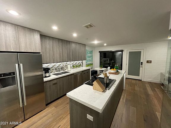 rarely available and highly sought after condo in the heart of Old Town Scottsdale. Fully Renovated 2 bed, 2 bath condo features open concept. Kitchen boast high end cabinets and waterfall quartz countertops plus Bosch appliances. Hardwood floors, soho tile and fully remodeled baths. Custom LED Lighting throughout, Hardwood floors, Soho tile and custom showers. Tankless water heater, stackable waher/dryer. 1 covered parking space and 1 uncovered. Well manicured complex. Walk to Fashion Square, Bars, Restaurants and all that Old Town has to Offer