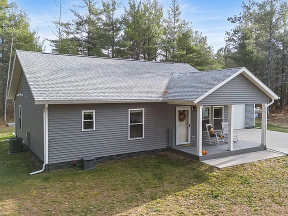 Beautiful 2 bed, 2 bath home just off Old 27 between Frederic and Waters. Built in 2021, this newer home sits on a wooded .89-acre lot and features an open layout with quartz countertops, stainless steel appliances, and a bright, modern kitchen. The spacious master suite includes a private bath and walk-in closet. Enjoy an attached garage plus a pole barn for storage and toys, air conditioning, an automatic generator, a covered front porch, and a cement back patio. The property adjoins state land and offers a gravel area perfect for RV parking.