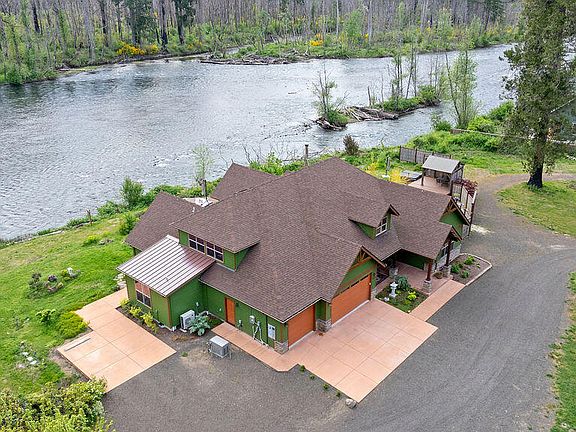 Enjoy fishing & kayaking right from your own back door! Custom home built in 2021 to include a breathtaking, sweeping open view from the main living & kitchen area to the mighty McKenzie River that flows just outside the picture windows. Exposed beams, Applewood Pergo floors & exquisite wine cellar w/ tasting room lend a rustic appeal. Custom craftsmanship blends the colors & feel of the natural beauty that surrounds this property in an area where the famous wooden McKenzie drift boat was born & now copied all over the world. With the new build, safety measures for fire & flood regulations have been met, including concrete siding, windows, parameter suppression, foundation raised & built to meet new zoning elevations. Dual zoning for commercial & residential! Property also features a log guest cabin w/ full kitchen & 1 bed, 1.5 baths. BLM just across the river. Enjoy the tranquility all to yourself or expand your dreams of other business ventures.