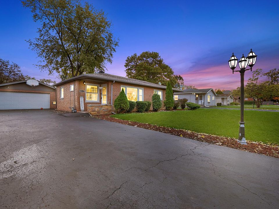 Beautiful custom brick ranch home in sough after location in Midlothian. Three great size bedrooms which includes a 15X12 Master bedroom with a shared renovated master bathroom. Custom eat-in kitchen with plenty of cabinetry & counter space. Newer stainless steel appliances. Seperate dining area. Nicely kept hardwood flooring throughout. Cozy family room with wood burning fireplace & sliding french door. Home is freshly painted and move in-ready! Recent updates include new roof in 2020, New water heater 2021, Tuckpointing 2020, driveway sealcoating 2021. Both bathrooms have also been renovated. Oversized huge back yard with a custom wrap-around porch and brick paver patio. Yard is fenced and has side driveway leading to a 2.5 car garage. Gas line located in the garage in case buyer would like to add a heater and have a heated garage. Property is in the Oak Forest School district.Must see!