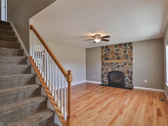 - Description: Hardwood flooring, Stone fireplace, Ceiling fan