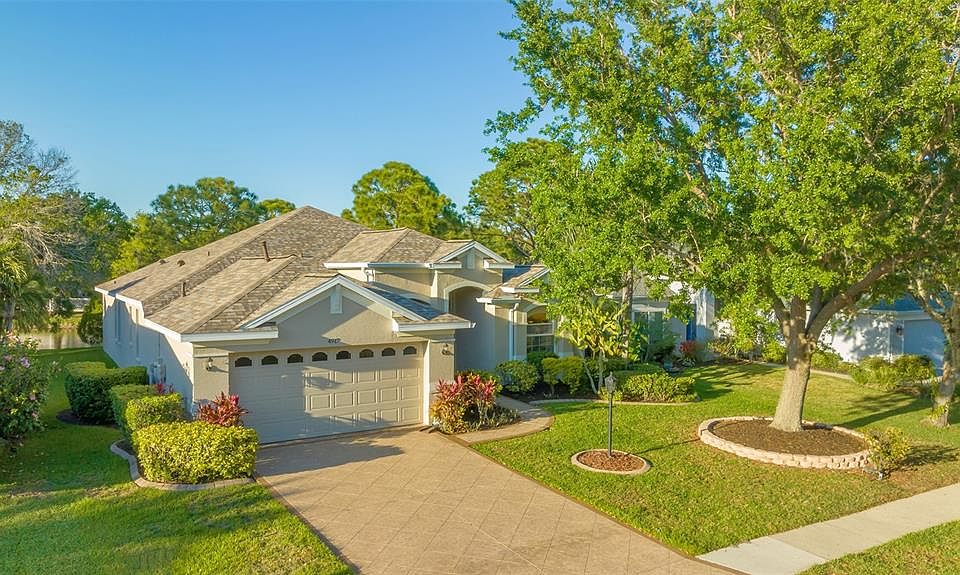 Are you searching for a residence in a deeded golf community with charming lake views? You can stop the search here. 4917 Creekside is a humble, inviting home with a beautifully manicured landscape and an oasis-like backyard. The roof was replaced less than 2 years ago, and the ceiling height is 12’, creating a vast yet cozy environment. The formal dining room and the kitchen are connected through a short hallway for ease of serving or hosting, and there is a spacious breakfast nook in the kitchen. The master suite displays a view of the lake, sliding glass doors to the Florida room, and a bathroom perfect for two. There are dual sinks, a soaking tub separate from the shower, and a walk-in closet with a plethora of storage. Upon walking into the residence, you are greeted on the left with a roomy office or den that could be easily converted into another guest room. On the right, is the grand dining room, and moving forward will be the main living area opening up to the kitchen and the Florida room enclosed with sliding glass doors. You will find the other two bedrooms, the laundry room, and a guest bath through a hallway leading to the garage. The garage is equipped with large storage cabinets, hanging storage capabilities, and a wallboard for hanging and displaying tools. In the friendly community of Carlyle, you have the joyous opportunity to be a part of the posh Palm-Aire Country Club. This features two 18-hole championship courses, eight lighted Har-Tru tennis courts, a beautiful clubhouse, state of an art fitness center, an Olympic size swimming pool, and other amenities. Conveniently located near the University Parkway/UTC Mall corridor, and only a short drive to Downtown Sarasota, St. Armand's Circle, and our world-renowned beaches. Did I mention that Sarasota International Airport is just 15 minutes away? A popular Golf community without CDD fees makes this beautiful house a perfect place to call home! WHY NOT?!
