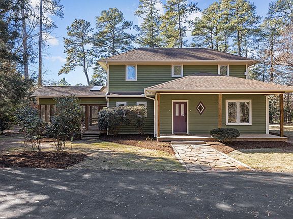 LOCATED JUST 10 MINUTES FROM DUKE UNIVERSITY & DUKE HOSPITAL! This well-appointed home on a 1.99 acre wooded lot boasts ample curb-appeal and offers a private country feel, yet there's convenient access to both Durham & Chapel Hill. With fresh paint throughout, all you have to do is move in to start enjoying all of the unique & carefully planned features of this one of a kind home! Upon entry you'll immediately notice the drop zone to keep shoes, coats, bags, etc... tucked neatly away. From there you'll find the kitchen which has a large pantry with built-in shelving, a center island perfect for using as a prep space for meals or added counter space when entertaining guests, and tons of cabinet space and nooks for organizing cookbooks and all of your favorite kitchen gadgets. The open living & dining areas offer a welcoming feel with large picture windows adorned with custom remote controlled shades that allow natural light to filter in adding a pleasant ambiance to the space. Speaking of ambiance, it will be hard to resist cozying up to the wood burning fireplace with a blanket and hot beverage of your choice during those cold winter months! Making your way through downstairs, you'll note that the hardwood floors continue into the spacious primary suite tucked in the back of the home with a walk-in closet featuring custom built in drawers and shelves and a large functional bath with a tile walk-in shower, separate tub and double vanities. If you're in need of a study or library, then look no further - located just off the primary, this room offers the perfect place to house all of your treasures from books to photos, collectibles and keepsakes, you're sure to find a spot for everything! In addition to the library there's a separate dedicated office on the first floor with built-in cabinets for easy storage. Next is a large laundry room with a sink and counter space, but there's no need to worry about hauling laundry back & forth between floors because this home has a laundry chute, making your day to day laundry chores a breeze to handle! Next up is the conveniently placed half bath, perfect for guest access. Before heading upstairs, there's one last flex room on the first floor that could be used as a den, dining room, play area, game room or even a home gym with pocket doors that allow the option to easily close off or open up this area as needed. It also has a built-in nook with shelves under the stairs that would be perfect for a TV & gaming console or to store books, board games, etc... Upstairs you'll find two generously sized bedrooms, each with a bed situated above a built in cabinet for added storage space. A work/desk alcove in the landing and a full bath with two separate vanities rounds out the upstairs. Now let's talk about the beautifully landscaped exterior! If you prefer to dine outside on a nice spring evening or need a spot to enjoy a cold beverage during the hot summer months, then look no further than the oversized screened porch with a vaulted ceiling! If you're a nature lover, just add a bird feeder and enjoy the views of your feathered friends who are sure to flock to their new favorite feeding station. Just off the screened porch is a deck, which transitions to a flagstone patio, creating the perfect spot for outdoor grilling. A fully fenced yard with an automatic gate at the driveway allows easy access in and out, and the double attached garage offers extra parking and storage space. You're sure to fall in love at first sight with this home! From the custom shaped windows and pocket doors throughout, to the shelter for stacking firewood, attention to form and function are apparent at every turn in this contemporary charmer!