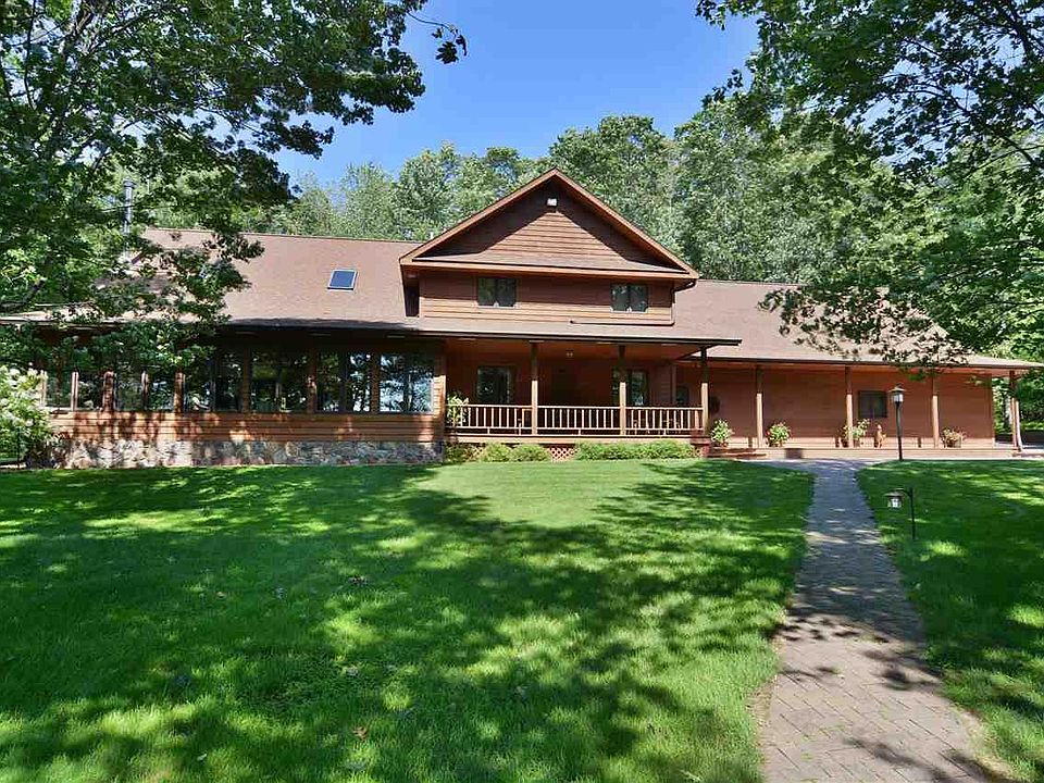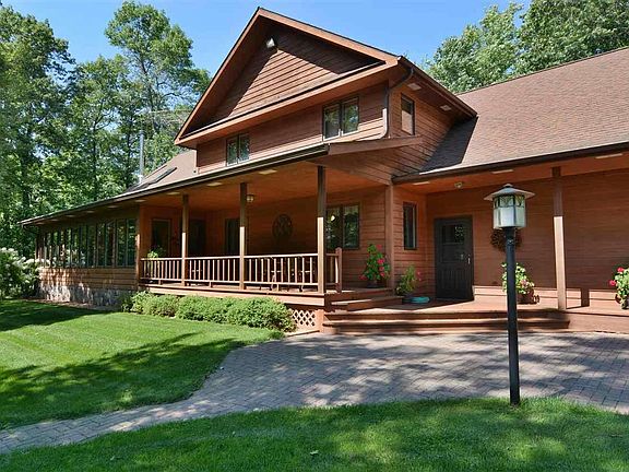 "Who says you can't have it all?" Privacy. Lake-level elevation. South Facing. Sand Beach. Sound good? Now add a well built 3,500 sq ft lake home with a beautiful blend of redwood siding and cedar interior. Not to mention an over-sized attached garage with room for 4 vehicles and you have an optimal lake retreat. The home is spacious with 4 large bedrooms, two and one-half baths and a full unfinished basement. A dramatic great room features a floor to ceiling wood burning fireplace with cozy family room on the second level. The lakeside sun room and covered deck are great places to view the lake and enjoy the out of doors. The site is private with 300 ft of perfect lake-shore and 2.67 acres. An excellent blend of lush lawn, beautiful flower beds which are easy to maintain, and lovely wooded areas. A brick walkway leads to a lakeside patio along the sand beach of Middle Eau Claire Lake.