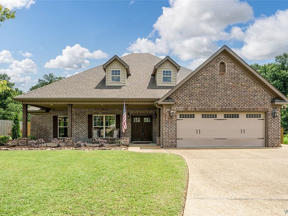 Wow! Custom-built brick, three bedroom two bath home! Features: Open floor plan with wood floors in the great room, kitchen, dining room, and master bedroom; Great room with fireplace; Master bathroom has a double vanity, tile shower, soaking tub, and a huge walk-in closet! The open kitchen is a dream with a gorgeous tile backsplash, stainless steel appliances, granite countertops, custom wood range hood, huge walk-in pantry, and lots of storage. Enjoy the large covered back porch, open patio and private backyard which is perfect for enjoying the outdoors and entertaining!