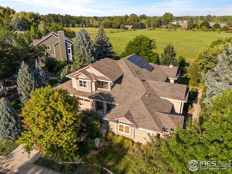 Step into a masterpiece of form & function at 4918 Hinsdale Drive, Fort Collins, a custom-designed residence with main-floor primary bedroom, pays homage to Frank Lloyd Wright's craftsman style. This 5,657 square foot home sits on a generous 0.32-acre lot, embodying beauty & efficiency. With 4 bedrooms & 4 bathrooms, this property seamlessly blends comfort & luxury, backing to private acreage. The home's design focuses on efficiency, boasting foam-wrapped walls that dramatically lower air exchange (50% lower than the most efficient code-built home), reducing heating bills to just $600 annually. The advanced heating & cooling system, complete w/ an air handler, air conditioner, air exchanger, & gas boiler, ensure year-around comfort. The heat recovery ventilator brings fresh filtered air into the home & distributes air in the home evenly for added comfort & efficiency. The Solar City electric solar panel system not only powers the property but often generates surplus electricity, contributing to sustainability. Upon entering, the foyer welcomes you to a smartly laid out home featuring high-end finishes like Emtek hardware, a primary suite w/ in-floor heating in the bath, a formal dining room, & a perfectly appointed kitchen. The kitchen is a chef's dream with Milarc custom cabinets, a walnut island, & high-end appliances including a Bluestar Gas Range & dual 36" Sub-zero column refrigerator & freezer, all crowned by a commercial-grade over-range hood. The two-story sunroom floods the space w/ natural light & passive solar heating. The upper level hosts a guest suite w/ a west-facing balcony, while the finished daylight basement provides versatile living space w/ two bedrooms & room for a future kitchenette or wet bar. Outside, enjoy the meticulously landscaped backyard featuring multiple fruit trees, a rose garden, raised beds, two patios & a perpetual fresh Christmas tree farm. A three-car insulated garage completes this exquisite find; a true Fort Collins treasure.