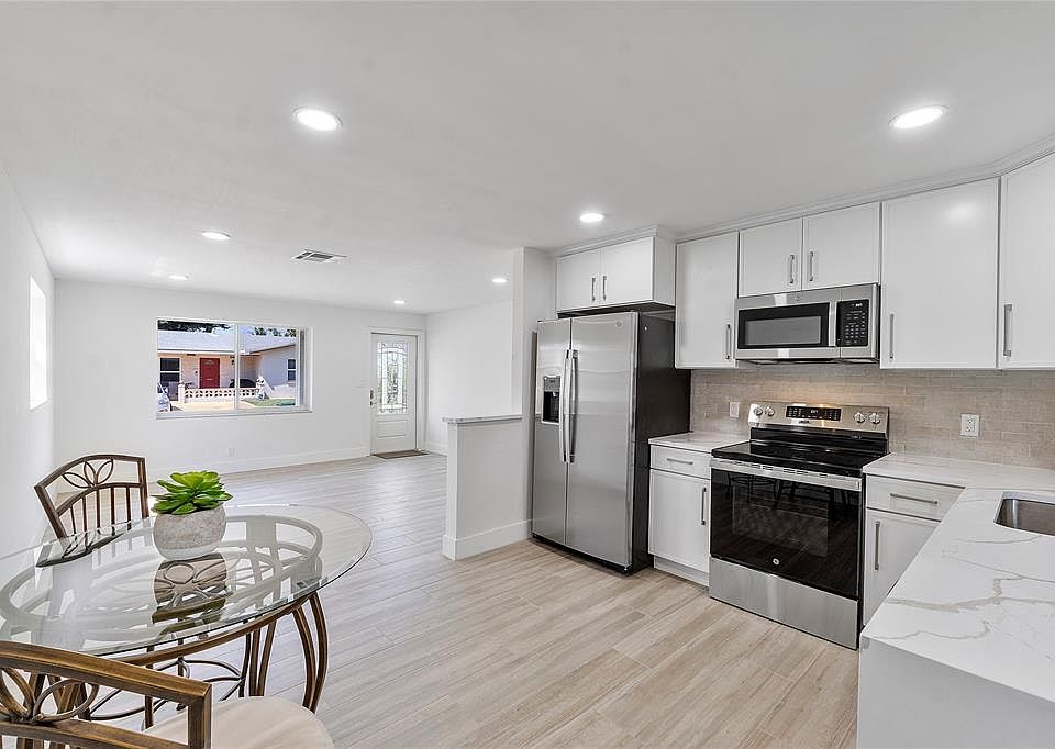 Quartz countertopBright modern kitchenAll new interior doorsAccordion shuttersScreened in patioBedrooms closets with organizers