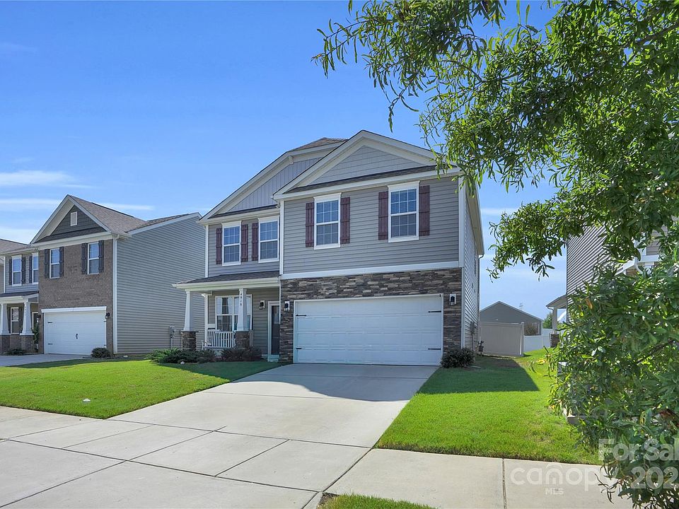This beautiful home features 4 bedrooms and 2 bathrooms, highlighted by a spacious family room with a cozy gas fireplace, a separate dining room, and a kitchen with 36" cabinets, granite countertops, and a subway tile backsplash. The first floor boasts 9' ceilings and durable laminate flooring throughout, creating an open and inviting feel, while Sutton Farms offers a prime location near Riverbend Village, Uptown Charlotte, the Whitewater Center, the airport, and the University area.