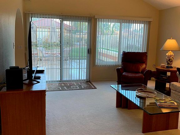 AVAILABLE Feb + Mar 2026. Leased Dec 2025, Jan, + Apr 2026. This lovely 3 bedroom, 1.75 bath condo is an end unit. Vaulted ceiling in living room enhances the feeling of spaciousness. Light & bright. Condo is offered TURNKEY FURNISHED. Nicely decorated. There is a slider from the living room out to the west patio. Master bedroom which has vaulted ceiling has slider out to private patio. Kitchen has granite counter tops and Newer appliances. Guest bedrooms are light & bright. Association pool/spa are a short walk...golf, lighted tennis, pro shop, restaurant are nearby. SEASONAL RENT $4,250.00/mo.; AVAILABLE Nov. - $3,500/mo. May thru Oct $2500/mo.