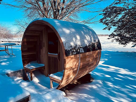 Multiple bedroomsLarge lakeside deckRelaxing barrel saunaLarge dining areaBlacktop drivePrivate deckWalk-in closet