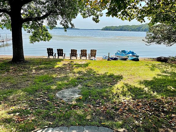 Outside, this property truly shines with its rare, level lot and sandy beach, a large lakeside deck, a relaxing barrel sauna, and a blacktop drive that extends from the road all the way to the dock for easy access. The property also includes land across the road with additional parking, plus two storage sheds.