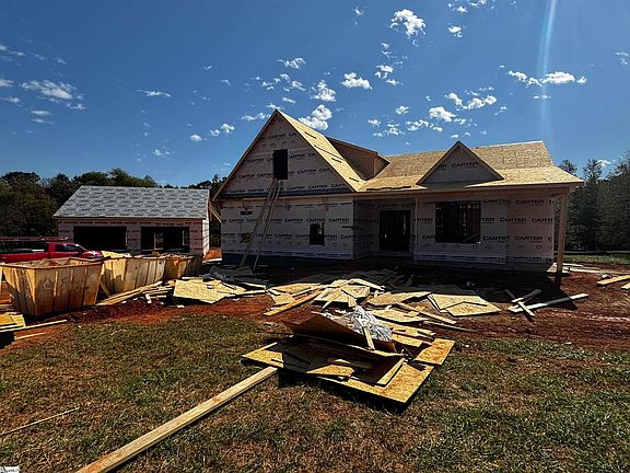 Welcome to Country Mist Farms featuring a total of 7 homesites from 3.2 - 6.5 acres. This home is to under construction on lot 2 (5 acres) - Country Mist Farms. Estimated completion Feb-March 2026. Brand-new 3BR/3BA modern farmhouse by Distinguished Design on 5 private acres in Campobello! This home features an open, light-filled layout, a spacious kitchen with large island, and a main-level primary suite with walk-in closet and well appointed primary bathroom Two additional bedrooms and flexible living spaces offer room to grow. The Big Ol' 40’x40’ detached garage provides incredible storage, workshop potential, or space for hobbies, vehicles, and equipment. Features 12' ceiling height (bring the car lift) with a bonus room above for storage or future expansion. Enjoy peaceful country living with plenty of usable acreage—just minutes to Greer, Landrum, Tryon, and Upstate conveniences.