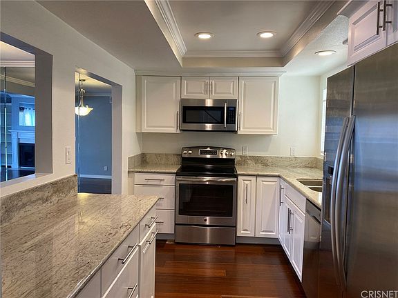 Absolutely stunning 2 bedroom 2.5 bath Townhome located in Valley Village/ Studio City location. This stunning home features deep rich cherry hardwood floors throughout, a designer kitchen including custom soft close pull out cabinetry,beautiful granite countertops, all stainless steel appliances, and recessed lighting. A separate dining room and extremely spacious living room with built-in book shelves and gas fireplace. beautifully remodeled throughout. You will love the stunning dual master suites and completely remodeled bathrooms featuring granite counters and glass enclosed shower and custom paint.The additional features include recessed lighting, crown molding, custom paint, walk-in closets,sky lights and side by side washer and dryer All appliances are included. The location is stellar just one block from riverside drive you are literally walking distance from Gelson's market 101 freeway access and shops and restaurants. This is a perfect home for roommates. available for immediate move -in.