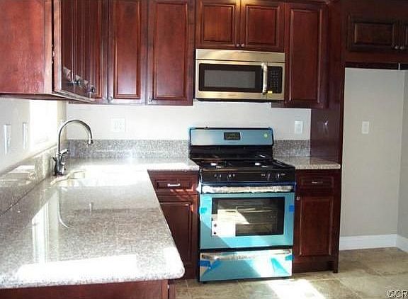 WOW........Completely Rehabbed and Ready to Go !!! Owner has spent over $90K in thes Remodel...... Start with the STUNNING Curb Appeal- Cozy Front Sitting Porch w/ Turned Wood Posts, New Exterior Grey Stucco w/ Accenting Black Shutters and Beautiful RED Front Entry Door ! Open Concept Living Room w/ Recessed Lighting, 5"inch Baseboards,Crown Molding w/ Decorative Sconces and Newly Refinished Dark Wood Flooring ! Sit up at the Breakfast Bar w/ Granite Countertop and Convenient Granite Desk Top on other Side with Extra Cabinets/Storage. All NEW Cherry Wood Soft Touch Drawers, Travertine Look Tile Flooring and NEW Frigidaire Stove, Dishwasher and Microwave ! A Full Laundry Room is attached to Kitchen w/ Extra Cabinetry and Rear access door to HUGE backyard w/ Blockwall fencing... Hallway into Bedrooms has More Extra Cabinets on both sides-great for linens or storage ! Large Bathroom w/ Custom Tiling, NEW Modern Vanity w/ Backsplash, NEW sink & toilet, and Tiling Surround in Bathtub w/ S