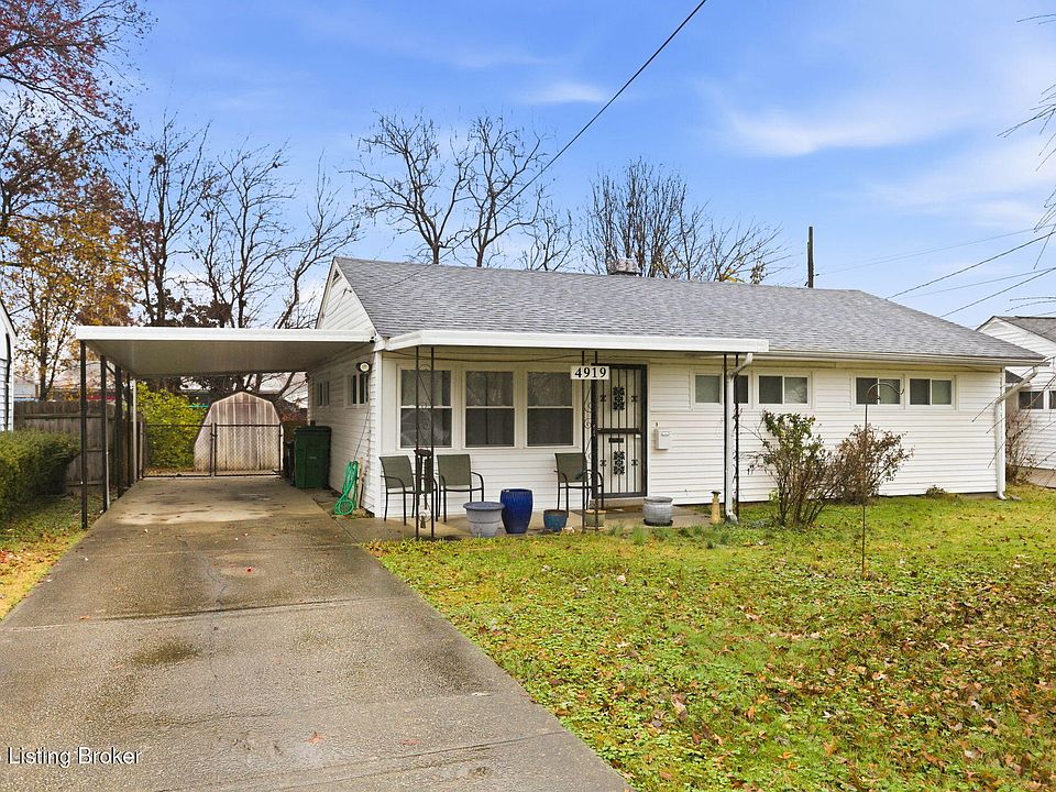 Move-in ready, spacious 1-story Ranch home w/ covered parking on Quiet street in low traffic (Non-cut-thru) area, tucked back off S Preston, minutes from I-264. Driveway and Attached 2-car (tandem) Carport leads to Covered front patio, which enters into Large Living Rm w/ dining area. Smooth-surface, LVT floors. New ViWinTech windows 2025. Mosaic-tiled Bathroom with tile surround. An abundance of closet space + additional attic storage. Stove and microwave stay. 3rd BR or home office has a private exit leading to a covered rear patio and a private, fully fenced yard. The yard features an attached utility/tool shed and a large bonus shed (in need of repair). Sold ''As Is'' w/ easy, increased value potential w/ minor sweat equity or cosmetic upgrades. Best to hurry on this one.