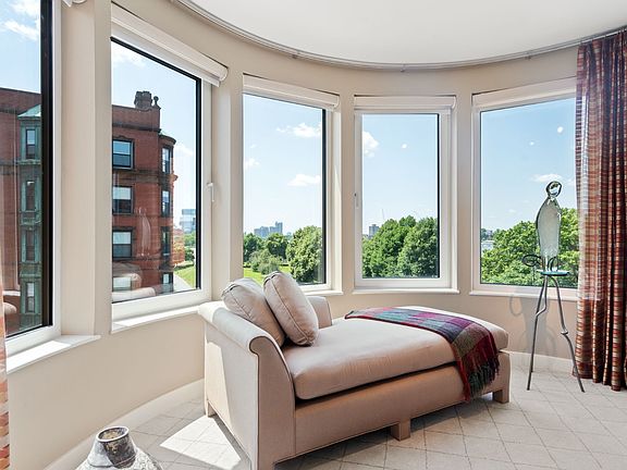 Rarely available corner 3 bedroom in one of Boston's most desirable full service boutique residential buildings. This sun-filled home with 3 exposures features a spacious living/dining area with sweeping views of the city and of the Charles River. The updated kitchen has granite countertops, wood cabinets, Bosch appliances and Sub-Zero refrigerator. All 3 bedrooms are well proportioned and look down into the building's gorgeous landscaped garden (3rd bedroom currently used as a study). The 2 bathrooms are newly renovated and well appointed. Church Court, designed by Graham Gund, is a well managed building offering 24/7 concierge, newly upgraded elevator, landscaped common interior courtyard and private extra storage. One direct access full garage space (#3) and one outside space (also #3) under camera are included. Building has a strict "no pet" policy. A+ location easy walking distance to the Esplanade, Fenway Park for outdoor activities, Cambridge and all the Back Bay has to offer!