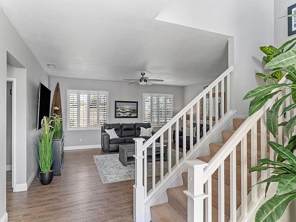 Welcome to this charming Wanis View Estates home that has been thoughtfully upgraded with paid solar featuring 18 panels, LG Back up Panel, New Electric HVAC with gas backup, and a tankless water heater. Enjoy the convenience of a Halo water filtration system and QuietCool Whole house fan. This 6 bedroom, 3 bathroom home boasts fresh paint inside and out, new turf, succulents, and landscaped grounds. The main level offers an open floor plan seamlessly connecting the kitchen, dining room, and family room - perfect for entertaining or daily living. A downstairs bedroom and full bathroom provide convenience, while the dining room features a cozy fireplace and custom built-in cabinetry. The spacious kitchen includes a large center island with built-in trash and recycle cabinet, as well as 2 large pantries. Upstairs, the primary suite is a peaceful retreat with plenty of natural light, high ceilings, and a ceiling fan. The ensuite bathroom features a dual sink vanity, smart mirror with dimmable lighting, defrost & music, a free-standing soak tub, beautifully tiled shower, and a huge walk-in closet. The upstairs laundry room and 4 additional bedrooms complete this meticulously updated home. Located near the San Luis Rey River Trail, the skate park, schools, shopping, and the 5 freeway. Plus this home is just under 3 miles from the stunning Southern California Ocean.