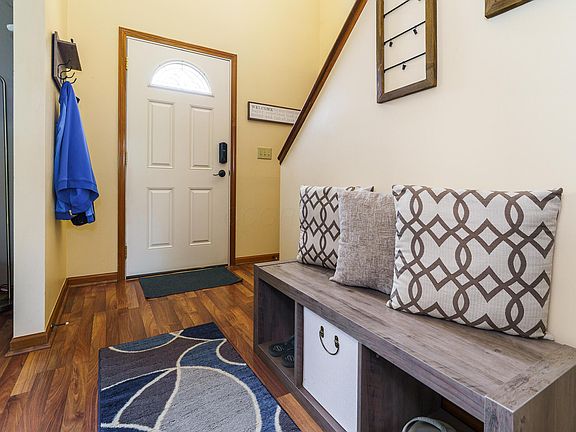 The partially finished basement expands your living space with a versatile rec room — ideal for a playroom, home gym, or media space — while the unfinished side provides ample storage. Step outside to enjoy a private back patio, perfect for relaxing or entertaining on crisp fall evenings.