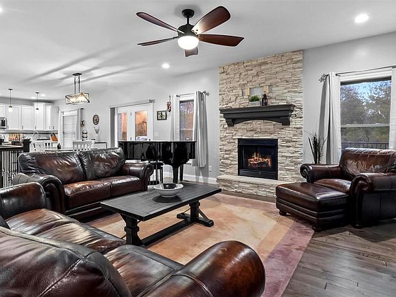 Meticulously maintained and partially furnished builder’s home with custom materials and true craftmanship is awaiting your finishing touches. This 1900+ sf home sits on over 1 acre with a nice sized newly fenced yard and sod lawn. Beautiful and quiet neighborhood, close to amenities and conveniently located between Washington and Union. 9’ ceilings throughout, gas fireplace in great room, beautiful hardwood floors in great room, hallway and bedrooms. Herringbone tile in kitchen and bathrooms. This house has everything you would expect. The kitchen features beautiful furniture with soft close cabinets and modern hardware. A gorgeous composite deck offers lots of privacy overlooking the back yard with steps down to the huge patio. Unfinished walk-out basement. Classy primary suite w/ ensuite bath featuring floor to ceiling walk-in tile shower, closet and double vanity. Oversized 3 car garage.