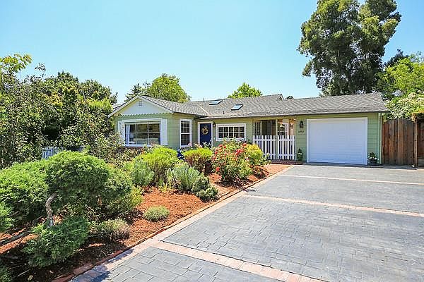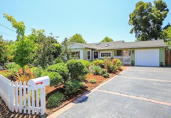 Lovely, cottage style home w/ white picket fence & an aromatic rose garden is welcoming to those who visit. Light is infused throughout this home & whether you enjoy relaxing by a wood burning fire, retreating to an incredible master suite, or just want to hear kids laughing in their own playhouse, this home has it all. 4 BR, 3 BA w/ 2,192+/- sf of living space & sits on a 9,135+/- lot.Kitchen features stainless steel appliances, freshly painted cabinets & a breakfast nook.Large paned picture windows & overhead skylights infuse so much light into the space. Magnificent master suite is a must see w/ huge walk-in closet and spa like master bath with jetted tub, separate shower & dual sink vanity. Large secondary bedrooms. One bedroom shown as a family room w/ views of the garden.Separate playhouse could be used as office or yoga studio. Easy access to major commuter routes. 4.8 miles to the Googleplex, 8 miles to new Apple Campus & 10.5 miles to Facebook Headquarters. Los Altos Schools!