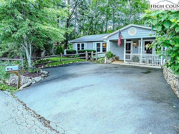 Perfect In town Blowing Rock Mountain Cottage Getaway and With a Mountain View too! Enjoy one level living from this 3 bedroom 2 bath delightful cottage located in a quiet walking neighborhood near the Blowing Rock Golf Course and just 1 mile to the heart of downtown Blowing Rock! Take one easy step inside to find beautiful heart of pine flooring and warm knotty pine walls enveloping the living and dining areas, creating a cozy mountain retreat. A striking gas log wood stove with a stone hearth anchors the living space, perfect for gathering on cool evenings. The spacious, light-filled kitchen is a delight, equipped with a propane cooktop stove, ample windows showcasing the beautiful mountain views, and an adjoining breakfast/coffee bar with handsome cabinetry for extra storage. The home features a serene master bedroom with an ensuite bathroom, plus two inviting guest bedrooms and a second full bathroom, ideal for family or visitors. A convenient laundry closet with a full-size washer and dryer adds everyday ease. Offered fully furnished and move-in ready, this turnkey cottage is ready for immediate enjoyment. Great outdoor living with over 1,000 sq. ft. of multi-level decking, including a charming covered rocking chair front porch! The back deck offers a very nice mountain view looking toward Green Hill! The lower-level “Sports Deck,” a favorite of the owners, provides ample space for ping pong, games, or lively gatherings with friends and neighbors. A small flat, fenced front lawn is a rarity in the mountains offering an ideal play area for pets or children. There is also a 438 sq. ft. partial finished basement, perfect for a workshop or storage. The basement has a "Tarheel Basement" installed clean space with a built-in dehumidifier. Again such a great location - Perfect distance ( 1 mile) to walk to town enjoy some shopping, maybe some live music and a meal and walk back - just the right distance to enjoy the day and burn some calories too!