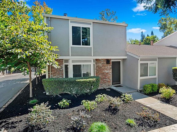 Renovations completed in Sept '24, this 2-level townhome tucked in a park-like setting with towering redwoods, lawns, foliage & paths to community pool, tennis courts. Private end unit. 1358+/-SF. 3 beds. 2 baths updated with new single & dual-sink vanities, polished chrome fixtures, mirrors, sliding shower doors, decorative tile. Wood-grain luxury vinyl floor throughout both levels. Fresh interior paint. Spacious living room w/gas fireplace, front-facing bay window. Kitchen updated with quartz counters, glass subway tile backsplashes, stainless sink, painted soft-close cabinetry, wine storage, microwave, dishwasher, new range and new refrigerator. Dining area with sliding door access to fenced outdoor patio & access to 1-car garage & single parking space. Three bedrooms located on upper level feature reach-in closets with new sliding closet doors, ceiling fans. Central AC. Large under-stairs storage closet. Walk to Rose Garden Shopping Center. Less than 1 mi to downtown Danville, Livery Shopping Center, restaurants, shops, services. Easy freeway access. Within mile of top-rated SRVUSD K-8 schools. Less than 2 miles to San Ramon Valley High School. Exclusive East Bay destination along the 680 corridor near 170 +/- acres of parks, Mt. Diablo State Park, walking trails, and more.