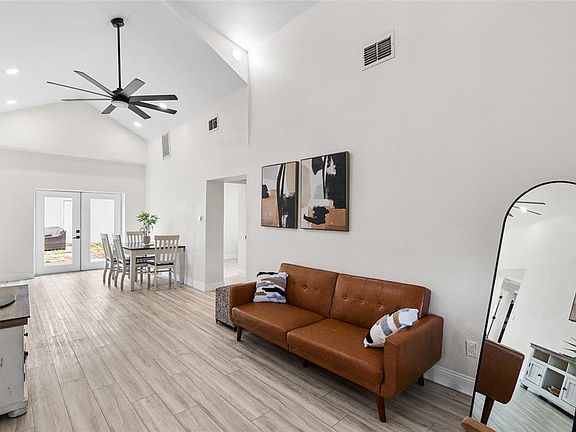 Fenced yardFully updated bathsSoaring cathedral ceilingsTons of natural lightNew flooringTankless water heaterFresh landscaping